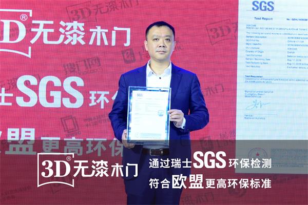 3D家居集團,此次全新升級的3D無漆木門這一品牌發展戰略的推出,不只是簡單名稱變化,更是3D家居集團從產品生產、運輸、店面布置、安裝、服務等一系列環保舉措的提升。3D無漆木門是行業首家通過歐盟更高環保標準瑞士SGS環保檢測,是對產品踐行環保理念,做健康家居產品的一份滿意答卷,也是對廣大消費者的一份鄭重承諾。 在發布會現場,3D家居集團還邀請了SGS檢測機構的嘉賓對于3D無漆木門產品給予最公正的評價同時還頒發了檢測證書。