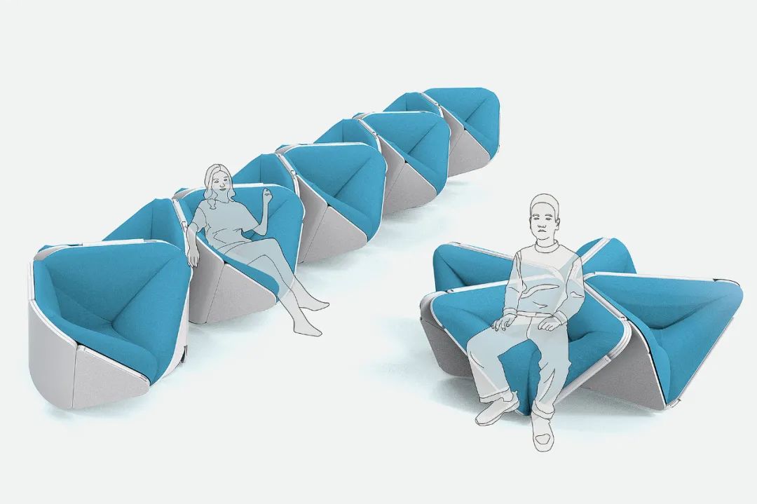 折疊椅是一種簡單的多用途公共家具形式,其靈感來自折紙藝術(shù)的原理,通過表面之間的相互支撐和折疊來實現(xiàn)群體穩(wěn)定性。