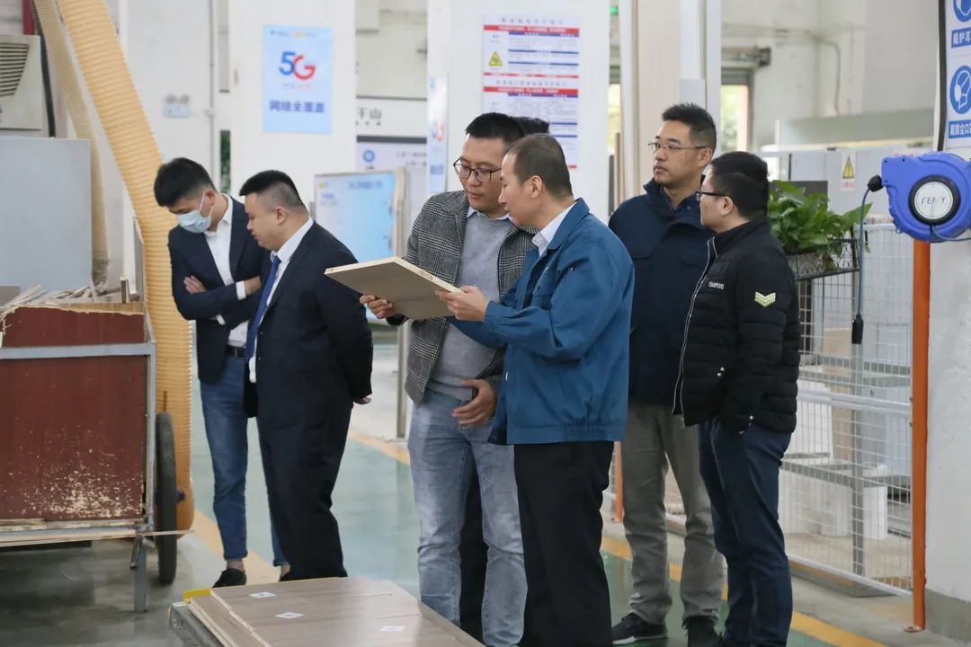 在云峰莫干山家居生產(chǎn)總監(jiān)賀強的帶領(lǐng)下,紅星美凱龍考察團(tuán)近距離感受了云峰莫干山家居現(xiàn)代化智能生產(chǎn)車間,并給予了高度評價。賀總監(jiān)介紹道:“云峰莫干山家居工廠配備了全套德國豪邁數(shù)字化生產(chǎn)線、德國IOMS軟件,通過軟件與硬件完美結(jié)合,實現(xiàn)真正意義上的數(shù)碼化生產(chǎn),在定制行業(yè)中擁有絕對的優(yōu)勢。”