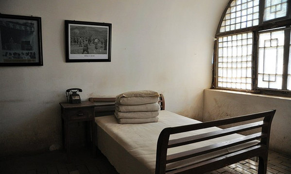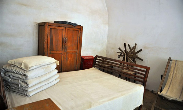 下面這張是周恩來總理在延安舊居的復原圖,在窄小的窯洞里,陳設非常簡陋,只有一張緊鄰睡床的寫字臺、一個柜子、一架紡車,據說周總理當年在延安紡線比賽中紡的線又細又勻,是個紡線高手。