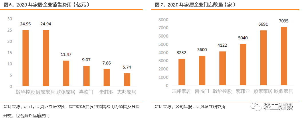 我們認為,渠道、產(chǎn)品、服務、制造,每一個環(huán)節(jié)做到極致都能帶來集中度的提升。當前龍頭企業(yè)已經(jīng)進入發(fā)揮規(guī)模優(yōu)勢,擠出地方品牌的階段,行業(yè)供給端進入整合期。一方面,渠道集中度持續(xù)提升,渠道的下沉和空白市場布局依舊在進行,龍頭家居企業(yè)每年銷售費用已經(jīng)達到5-25億量級,龍頭對渠道多元化、精細化管理、經(jīng)銷商賦能的能力已經(jīng)遠超同行。另一方面,龍頭優(yōu)化服務環(huán)節(jié),信息化、物流、安裝等過程也在持續(xù)精進。