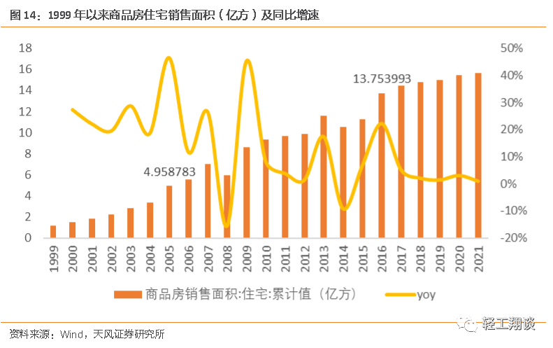 根據(jù)我們測算,2022/2023/2024/2025年全國存量更新需求占比約為19%/20%/22%/25%/28%,每年存量更新需求約為338萬套/375萬套/439萬套/517萬套。假設新成交商品住房15年翻新一次,2020年后正好迎來2005年開始的新房銷售高峰,05-21年我國新房銷售規(guī)模屢創(chuàng)新高,其中08-15年規(guī)模增幅最顯著,基于此,我們認為未來3年存量房更新需求或迎顯著上升。