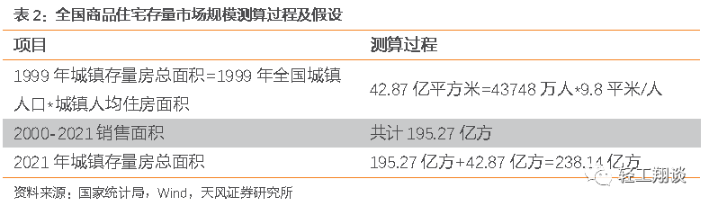 全國存量房規(guī)模21年末約238.1億方。按國家統(tǒng)計數(shù)據(jù),1999年全國城鎮(zhèn)人均住宅面積9.8平米/人,對應城鎮(zhèn)存量住宅規(guī)模42.87億方,假設套均面積90平米/套,存量住宅規(guī)模為4764萬套。在此基礎上,累加每年商品住宅銷售面積,2021年我們保守預計全國城鎮(zhèn)有效存量商品住宅市場規(guī)模為238.1億方。