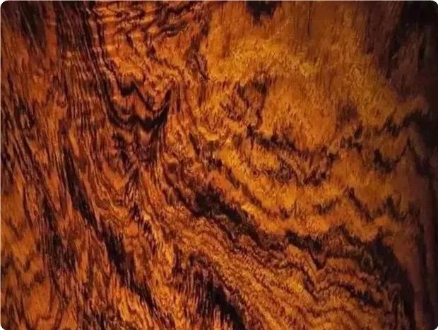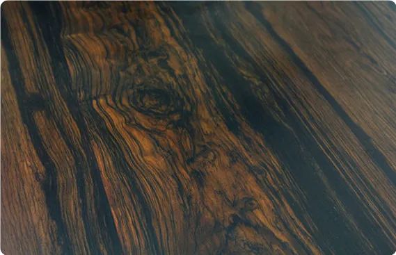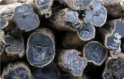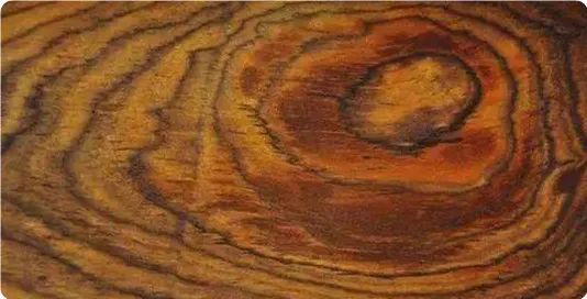 心材淺紅褐、黑褐或紫褐,常帶規則或不規則相間的黑色條紋,色澤比較均勻。管孔在肉眼下明顯,弦向直徑最大269μm,平均88μm;數略少至略多,11~24個/mm2。軸向薄壁組織在肉眼下略明顯,主為窄帶狀及細線狀(多數寬1細胞,與射線交叉局部略呈網狀)及環管束狀。木射線在放大鏡下略見;波痕在放大鏡下可見(木射線迭生構造不明顯);射線組織同形單列及多列。酸香氣無或很微弱;結構細;紋理直;氣干密度0.93~1.1 9 g/cm3。