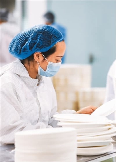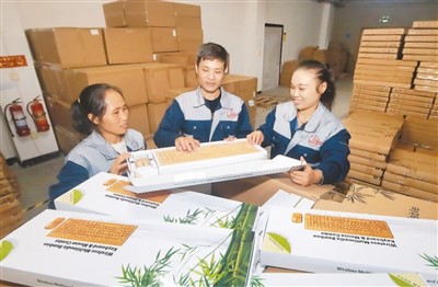 四川省宜賓市興文縣一家公司員工正在制作以竹漿等為原料的環保餐具。王 宇攝(人民視覺)