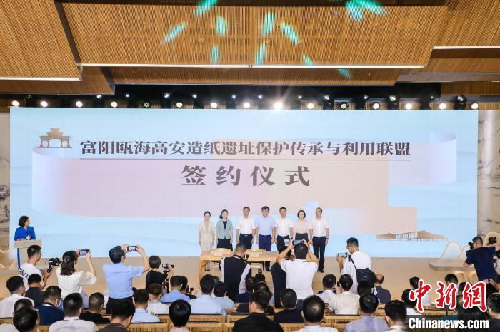 當日,富陽、高安、甌海三地造紙遺址保護與發展聯盟正式簽約。富陽泗洲造紙作坊遺址是迄今中國乃至世界范圍內所發現年代最早的造紙作坊遺址,把中國有據可查的造紙作坊的歷史往前推進了300多年。江西高安華林造紙作坊遺址是“2009年全國考古十大發現之一”。而位于溫州甌海的紙源村作為國家級非遺澤雅屏紙制作技藝傳承地,保留了最原始、最完整的古法造紙術,被稱為中國造紙術的活化石。三地合作將進一步促進造紙文化研究與手工紙行業間的交流與合作,推動手工紙的保護、傳承和發展。