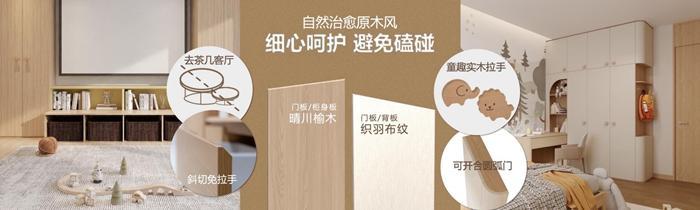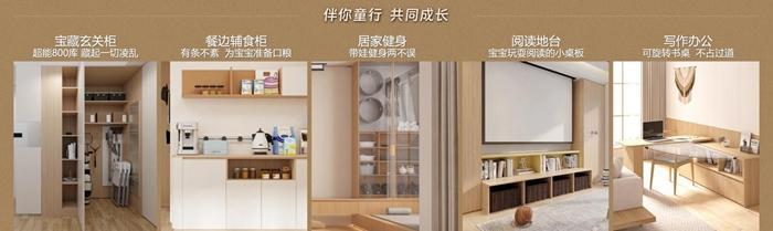晴川木語——針對新手爸媽,主打收納、陪伴、安全與玩耍。自然治愈的原木風,全屋柜類斜切免拉手、可開合圓弧門,搭配柔和線條的配套家具,細心呵護避免孩童磕碰。玄關柜藏起一切凌亂更清爽;用餐邊輔食柜有條不紊為寶寶準備口糧;健身收納區讓帶娃健身兩不誤;閱讀地臺給寶寶足夠的玩耍閱讀空間;可旋轉書桌不占過道,在小家也能舒適辦公。全面兼顧家庭成員的生活、工作所需,打造與孩子共同成長的有愛空間。