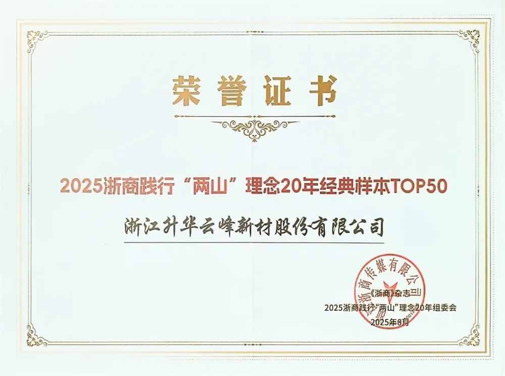 • TOP50!升華云峰入選“2025浙商踐行‘兩山’理念20年經典樣本”
